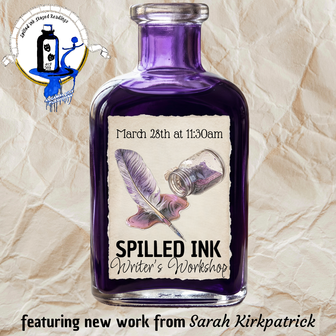 Join us for the first in Spilled Ink’s new series of writer’s workshops featuring readings of new material from local playwrights. In this first workshop, our featured writer will be Sarah Kirkpatrick. Following the reading of her new work and discussion, we’ll have some free writing time with a guided prompt and then feedback for any writer’s who want to hear their work from the prompt read.